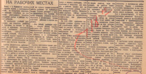 По окончании учебной программы ремесленного училища молодые столяры работают по 8 часов и выполняют задания цехов и отделов комбината: изготавливают тумбочки и табуретки для школы, рабочие шкафы для гаража. (Ф.57. Оп.1. Д.9. Л.18)